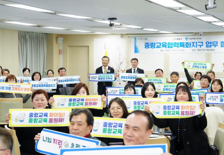 [메이저뉴스]중랑구는 11월 26일 구청 4층 기획상황실에서 서울특별시교육청과 ‘중랑교육협력특화지구’업무협약을 체결했다. 이번 협약은 2019년 혁신교육지구, 2023년 미래교육지구 추진에 이어 지역 교육 협력사업을 확장하는 단계로, 구·교육청·학교 간 협력 구조를 체계화해 지역 기반 교육 환경을 강화하기 위해 마련됐다.