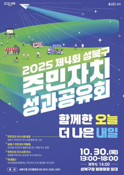 [메이저뉴스]서울 성북구가 오는 10월 30일 지역 주민들과 함께 1년간의 주민자치 활동 성과를 공유하고 주민화합을 도모하는 '2025 제4회 성북구 주민자치성과공유회'를 개최한다고 밝혔다.