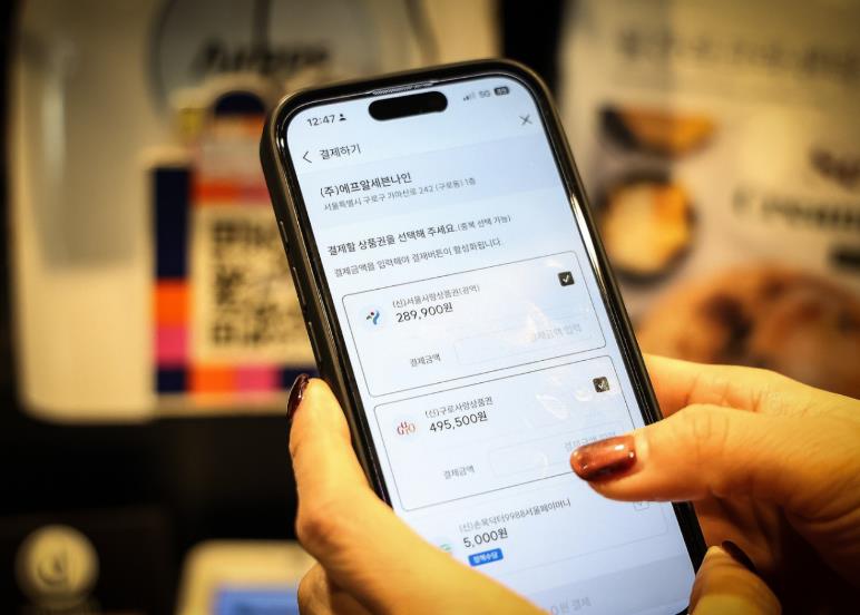 | ▲ 구로구 한 카페에서 주민이 모바일 애플리케이션을 통해 ‘구로사랑상품권’으로 결제하고 있다. |