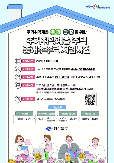 [메이저뉴스]상주시는 주거 취약계층의 경제적 부담을 완화하고 안정적인 주거환경 조성을 위하여 2026년 1월부터 “주거 취약계층 주택 중개보수 지원사업”을 시행한다.