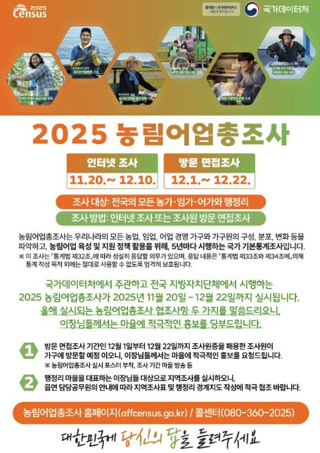 [메이저뉴스]예천군은 12월 1일부터 22일까지 인터넷 참여가 어려운 가구를 대상으로 ‘2025 농림어업총조사’를 방문하여 실시한다.