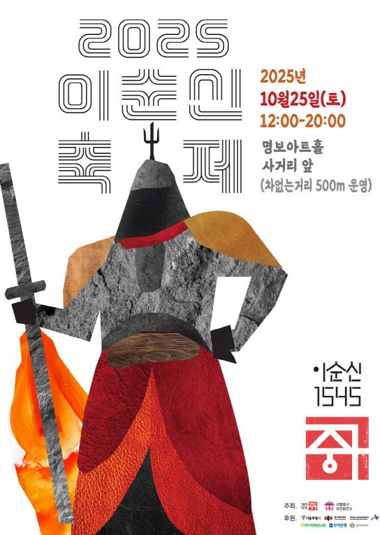 [메이저뉴스]충무공 이순신 생가터 인근 명보아트홀 사거리 일원이 새로운 축제로 물든다. 서울 중구가 오는 25일 낮12시부터 저녁 8시까지 ‘2025 이순신 축제’를 개최한다. 올해 첫선을 보이는 축제는 주민들과 함께 ‘이순신 장군의 탄생지, 중구’의 정체성을 되새기며 ‘이순신1545 중구’ 선포, ‘철인 이순신’ 선발, 120명이 채우는 대형캔버스, 해군홍보대 공연, 205m 먹거리존 등 다채로운 프로그램을 펼친다.