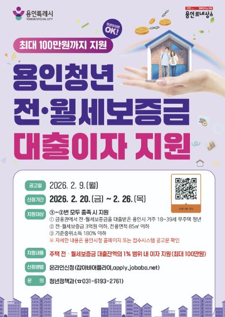 [메이저뉴스]용인특례시는 청년층의 주거비 부담을 덜고자 전월세 보증금 대출이자를 지원한다고 6일 밝혔다.