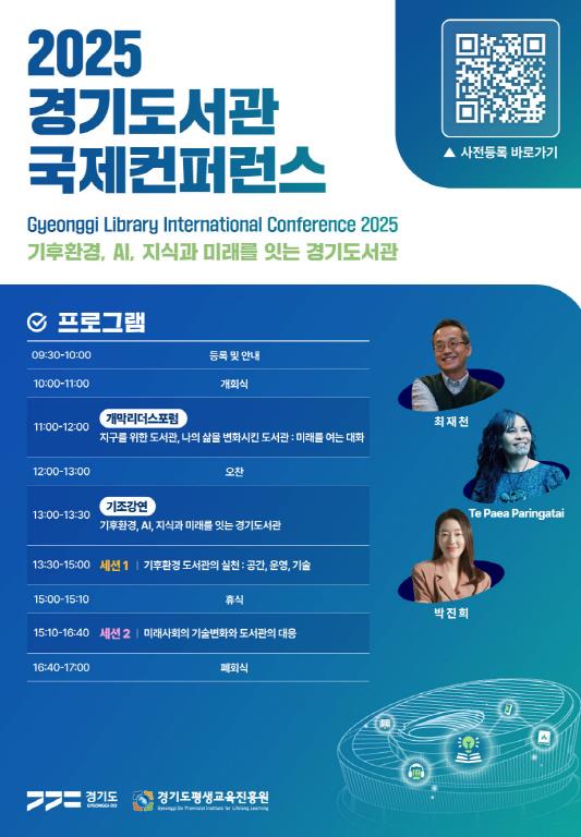 [메이저뉴스]경기도와 경기도평생교육진흥원은 오는 23일 수원컨벤션센터 컨벤션홀3에서 ‘기후환경, AI, 지식과 미래를 잇는 도서관’을 주제로 ‘2025 경기도서관 국제콘퍼런스’를 개최한다.