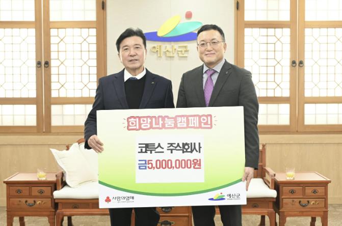 [메이저뉴스]예산군은 예당호 모노레일 운영회사인 주식회사 코투스가 어려운 이웃을 돕기 위한 ‘희망 2026 나눔캠페인’에 동참해 성금 500만 원을 기탁했다고 2일 밝혔다.