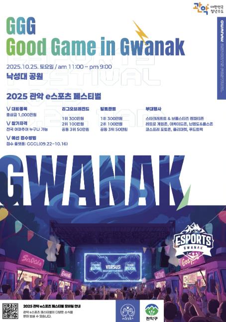 [메이저뉴스]전국 최초 청년친화도시 관악구가 세대 간 소통과 건전한 게임 문화 확산을 위해 남녀노소 누구나 즐길 수 있는 e스포츠 페스티벌 ‘Good Game in Gwanak’을 개최한다.