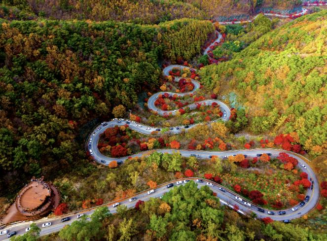 [메이저뉴스]충북 단양군의 대표 관광 명소 보발재가 형형색색 단풍으로 절정을 맞으며 전국 여행객들의 발길을 사로잡고 있다.