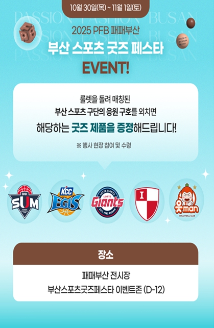 [메이저뉴스] 부산시는 오늘(30일)부터 11월 1일까지 벡스코 제1전시장 1홀에서 열리는 '2025 패패부산'과 연계한 '부산 스포츠 굿즈 페스타' 행사를 개최한다고 밝혔다.