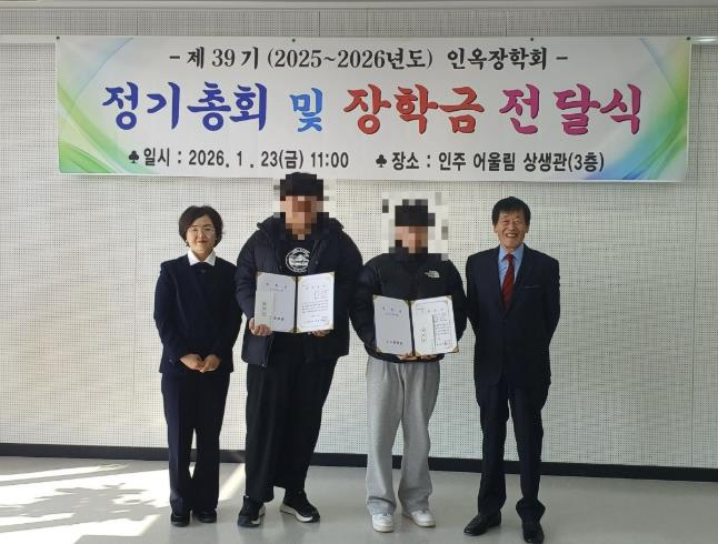 송경숙 인주면장은 “매년 지역 학생들을 위해 나눔을 실천해 주시는 인옥장학회 관계자 여러분께 깊이 감사드린다”며 “장학생 여러분이 자신의 가능성을 믿고 더 큰 미래를 향해 힘차게 도전해 나가길 바란다”고 말했다.