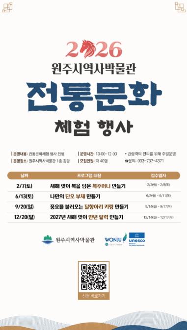 [메이저뉴스]원주시역사박물관은 새해를 맞아 ‘2026 전통문화 체험 행사’를 운영한다.