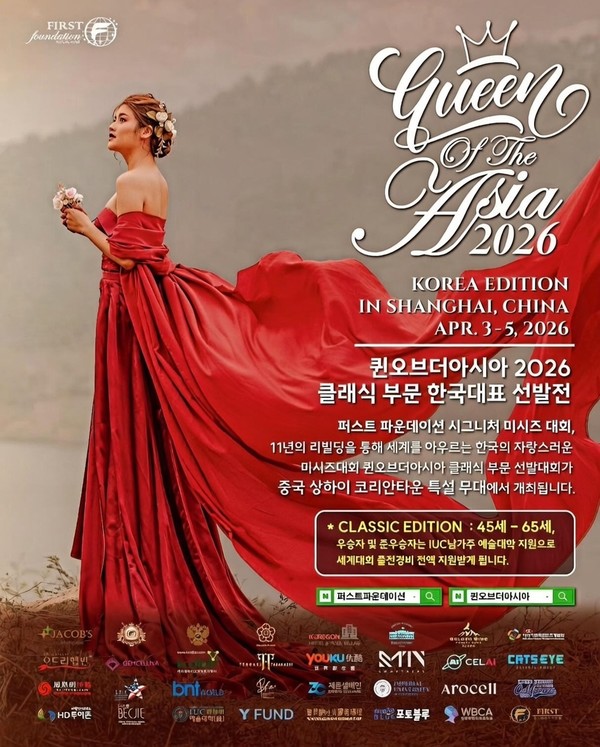 [메이저뉴스]비영리문화예술단체 퍼스트파운데이션이 주관하는 시그니처 미시즈 대회 ‘미시즈 퍼스트퀸오브더아시아(Queen of the Asia)’ 2026 정규 에디션이 한국 예심을 거쳐 필리핀과 중국에서 이원화된 본선을 진행할 예정인 가운데, 대회의 개최 취지와 방향성에 대한 관심이 높아지고 있다.