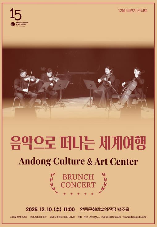 [메이저뉴스]안동문화예술의전당은 매월 둘째 주 수요일, 바쁜 일상 속 잠시 여유를 찾고자 하는 클래식 애호가들을 위한 브런치 콘서트를 정기적으로 운영하고 있다. 12월 10일 오전 11시에는 백조홀에서 한 해의 끝자락을 따뜻하게 채워줄 브런치 콘서트 ‘음악으로 떠나는 세계여행’을 선보인다.