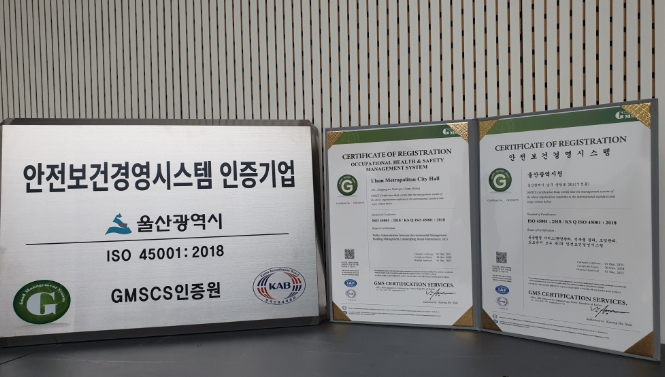 [메이저뉴스] 울산시는 국제표준화기구(ISO)로부터 ‘안전보건경영시스템(ISO 45001)’ 국제인증을 취득했다고 밝혔다.