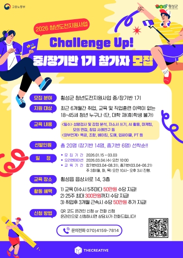 [메이저뉴스]횡성군은 지역 청년들의 사회 진출과 성장을 지원하기 위해 ‘2026 청년도전지원사업’ 참여자를 모집한다고 밝혔다.