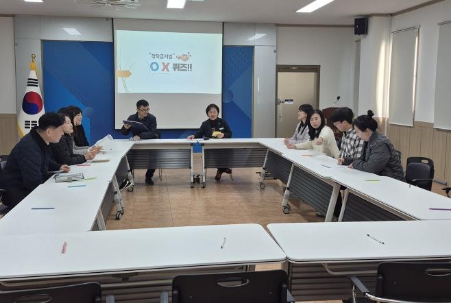 오엑스(OX) 문제는 부정청탁의 범위, 금품 등 수수 기준, 식사·선물 허용 한도 등 실제 업무 현장에서 혼동하기 쉬운 사례를 중심으로 구성돼 직원들의 높은 관심과 적극적인 참여를 이끌어냈다. 직원들은 퀴즈를 통해 청탁금지법에 대한 인식을 다시 한번 점검하고, 청렴의 중요성을 공감하는 시간을 가졌다.