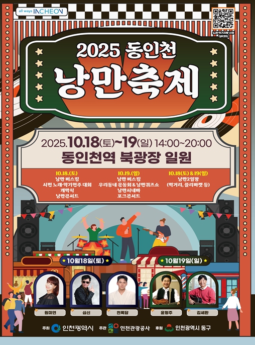 [메이저뉴스]인천광역시는 오는 10월 18일부터 19일까지 이틀간 동인천역 북광장에서 ‘2025년 동인천 낭만축제’를 개최한다고 밝혔다.