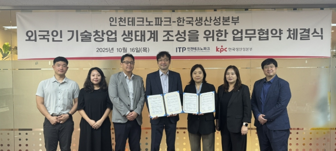 [메이저뉴스] 인천테크노파크는 지난 16일 한국생산성본부와 ‘외국인 창업 활성화 및 창업 생태계 조성을 위한 업무협약(MOU)’을 체결했다.