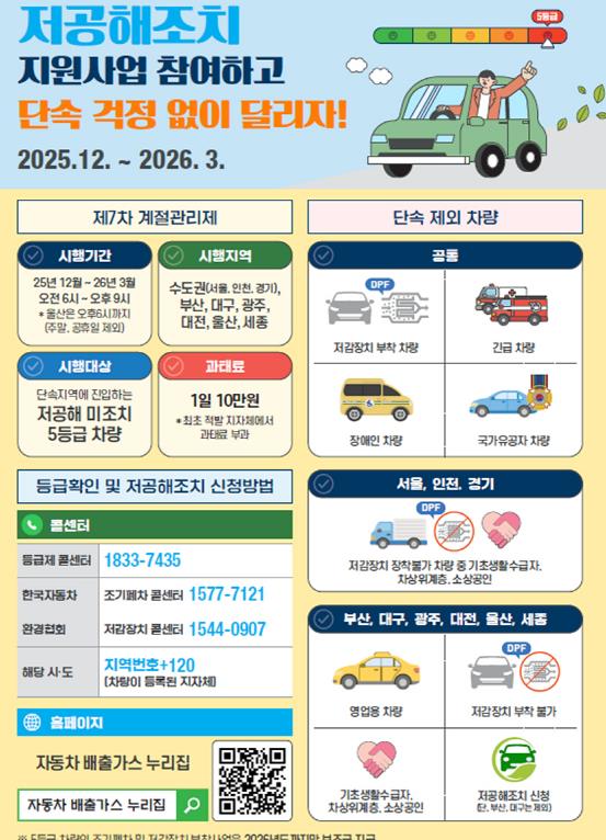 다만, 영업용 차량과 수급자 및 차상위계층 소유 차량, 소상공인 차량은 이번 단속에서 제외된다.