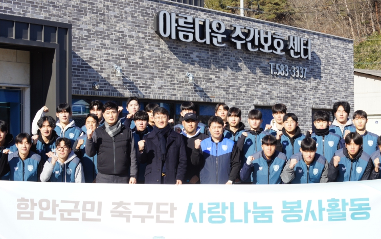 [메이저뉴스]함안군은 지난 3일 함안군민축구단(단장 전창옥)이 2026시즌 첫 공식 일정으로 가야읍에 있는 ‘아름다운 동산 주간보호센터’에서 사랑 나눔 봉사활동을 진행했다고 밝혔다.