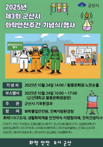 [메이저뉴스]‘화학사고 없는 안전도시 군산’ 실현을 위해 오는 10월 20일부터 24일까지‘제3회 군산시 화학안전주간’행사가 열린다.