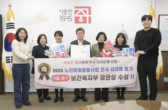 [메이저뉴스]서울 중구가 보건복지부 주관 ‘2025 노인맞춤 돌봄서비스 지자체 평가’에서 ‘우수’지자체로 선정돼 보건복지부 장관상을 수상했다. 구는 지역 돌봄 체계를 강화하고 스마트 기술을 도입해 어르신 일상 밀착 돌봄을 지원하며 높은 평가를 받았다.