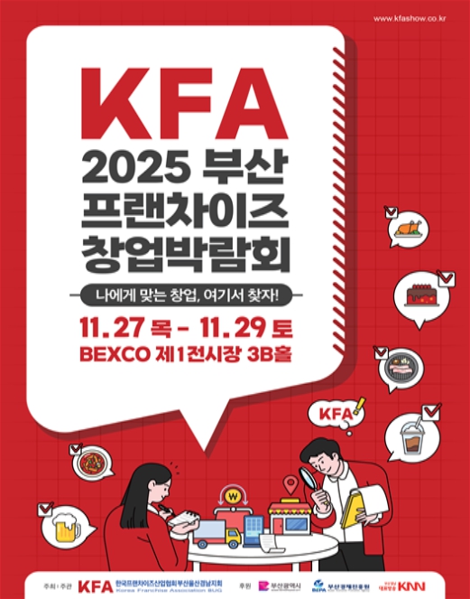 [메이저뉴스] 부산시는 27일부터 29일까지 3일간 벡스코 제1전시장에서 '케이에프에이(KFA) 프랜차이즈 창업박람회 2025 부산'이 개최된다고 밝혔다.