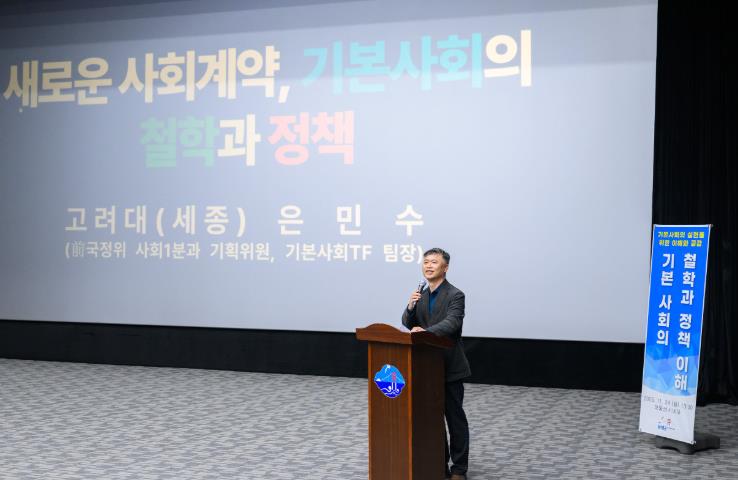 이날 강사로는 현 대통령 직속 지방시대위원회 위원이자 국정기획위원회에서 사회1분과 기획위원과 기본사회 TF 팀장으로 활동한 은민수 고려대 교수가 나섰다.