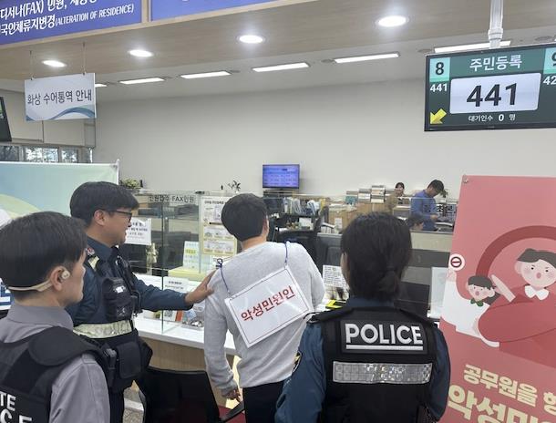 [메이저뉴스]원주시는 지난 10월 23일 원주시청 1층 종합민원실에서 원주경찰서(단계지구대)와 시청 청원경찰, 민원담당관 직원 등 20여 명이 합동으로 특이(악성)민원 및 비상상황에 대비하여 현장대응 모의훈련을 진행했다.