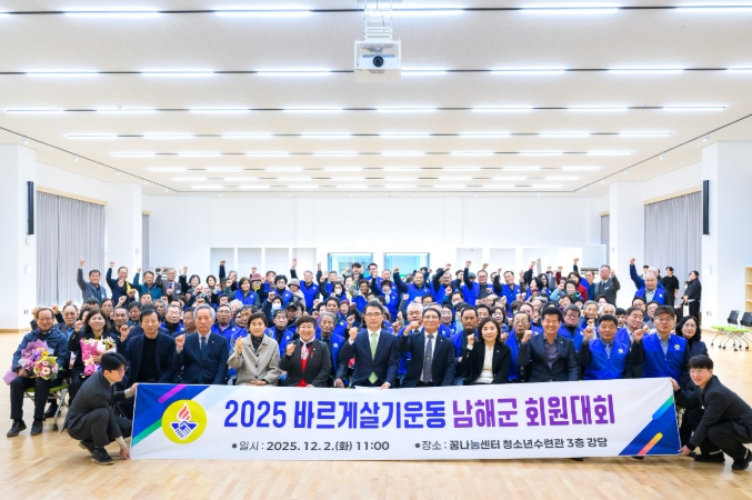 [메이저뉴스] 바르게살기운동남해군협의회(회장 권대석)는 지난 2일 꿈나눔센터 청소년수련관 3층 강당에서 2025년 바르게살기운동 남해군회원대회를 개최했다.