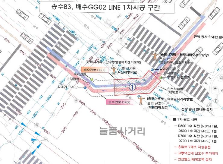 [메이저뉴스]원주시상하수도사업소는 태장배수지 설치사업의 일환으로 진행되는 늘품사거리 교차로 구간 송배수관로 설치공사를 야간에 실시한다.