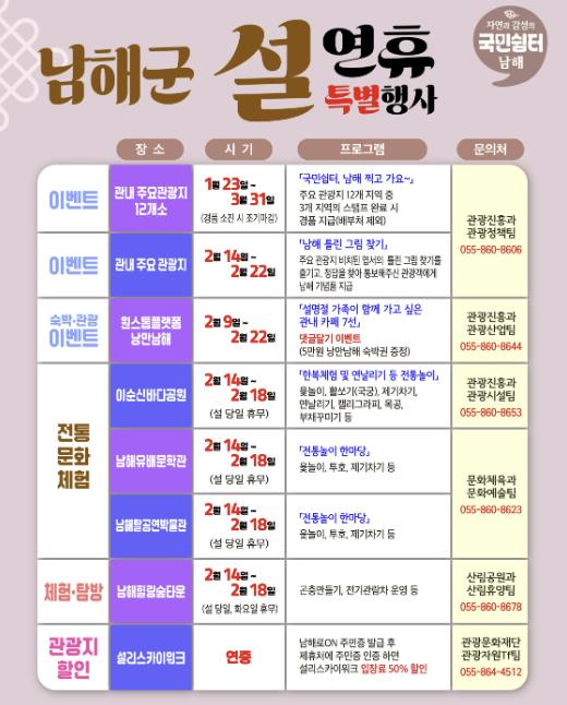 | ▲ 남해군, 설 연휴 특별행사 및 이벤트 '풍성' |