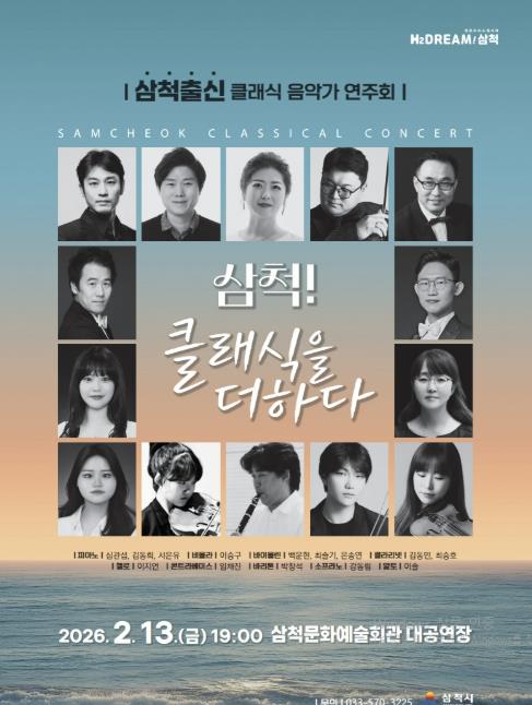 시 관계자는 “삼척 출신 음악가들의 뛰어난 연주를 통해 시민들이 문화적 자긍심을 느끼고, 지역 예술인들에게는 성취감을 안겨줄 수 있기를 기대한다”며 “앞으로도 시민들이 수준 높은 공연을 가까이에서 즐길 수 있도록 다양한 문화예술 프로그램을 마련하겠다”고 밝혔다.
