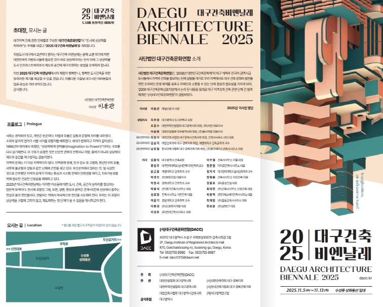 초청전시에서는 ‘2025 대구광역시 건축상’ 수상작, ‘대구건축 아카데미’ 작품, ‘대구건축사회 우수작품’ 등이 소개된다.
