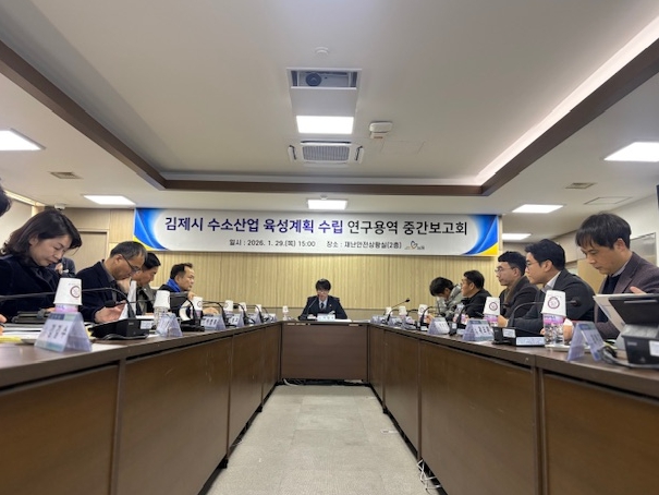 시는 지난 29일 김제시청 재난안전상황실에서 이현서 부시장 주재로 관련 공무원, 수소·에너지 분야 전문가, 유관기관 관계자 등 18명이 참석한 가운데 ‘김제시 수소산업 육성계획 수립 연구용역’중간보고회를 개최했다.