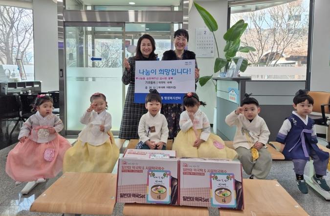 [메이저뉴스]수원시 장안구 조원2동에 위치한 토마토 어린이집은 지난 12일, 설 명절을 맞아 원생들과 함께 조원2동 행정복지센터에 떡국떡 10팩을 전달했다.