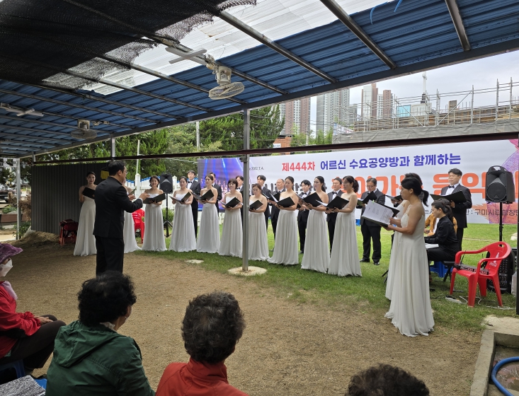 [메이저뉴스]구미시립합창단은 지난 22일 지산동 구미외국인주민센터에서 열린 제‘444회 수요공양 어르신 반찬 나눔’ 행사에 참여해 따뜻한 음악 봉사활동을 펼쳤다.
