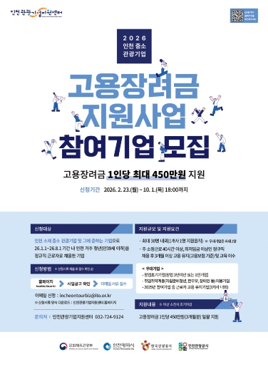 [메이저뉴스]인천광역시와 인천관광공사(사장 유지상)는 지역 중·소 관광기업의 안정적인 인력 운영을 지원하고, 인천 거주 청년의 지속 가능한 일자리 창출을 위해'2026년 인천 중·소 관광기업 고용장려금 지원사업'을 추진한다고 밝혔다.