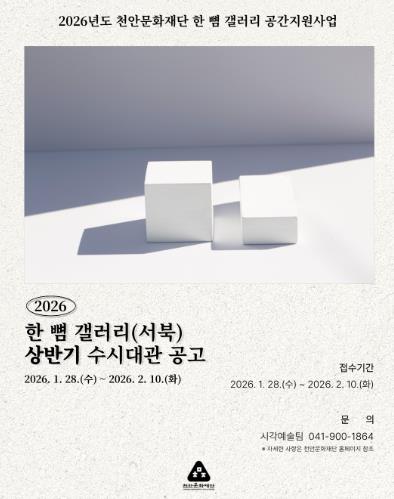 [메이저뉴스] (재)천안문화재단은 오는 28일부터 상반기 한 뼘 갤러리 수시대관 공모 접수를 받는다고 27일 밝혔다.