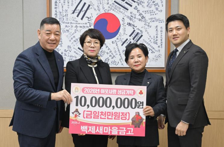 이날 시청 상황실에서 열린 기탁식에는 박완례 백제새마을금고 이사장과 김현정 전무, 이인행 상무가 참석했다.
