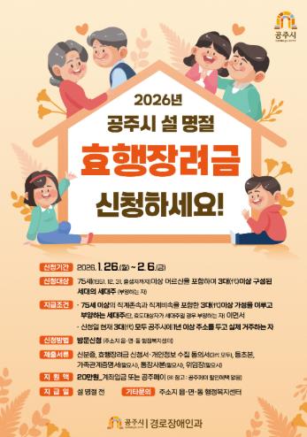 | ▲ 공주시, 설 명절 ‘효행장려금’ 20만원 지급 |