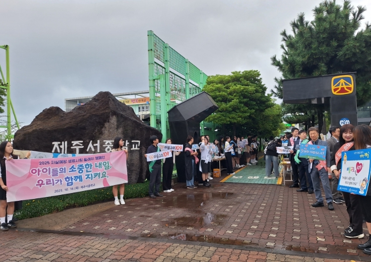 [메이저뉴스]제주도교육청 제주서중학교는 16일 오전 8시부터 8시 30분까지 아침 등교 시간을 활용하여, 제주특별자치도교육청과 함께하는 ‘2025 자살예방 생명사랑 릴레이 캠페인’을 진행했다.