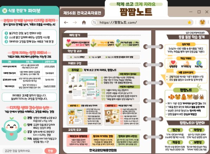 ‘작게 쓰고 크게 자라요, 팜팜노트’는 실과 교과와 생명과학을 융합한 생태전환 교육자료로, 식물 재배와 동물 돌봄을 통해 정서 감수성, 자기관리 역량을 기르는 데 중점을 뒀다.