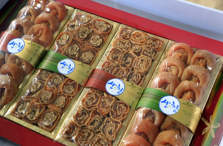 이때 지리산 산청곶감과 전북 전주의 이강주, 경북 경산의 대추, 강원 평창의 잣, 충북 황간의 호두 등이 선물세트로 꾸려졌다.