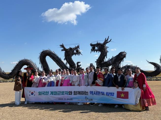 [메이저뉴스]김제시는 지난 21일, 올해 3~4월에 입국해 지역 농가에서 근무 중인 외국인 계절근로자 30여 명을 대상으로 벽골제·금산사 일원 역사·문화 탐방을 실시했다고 밝혔다.