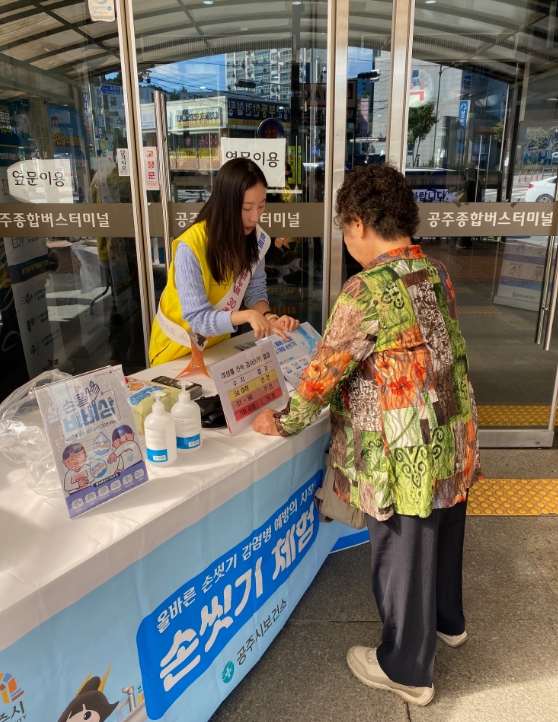 [메이저뉴스]공주시는 지난 15일 공주종합버스터미널 일원에서 시민과 이용객을 대상으로 개인위생 수준 향상을 위한 감염병 예방 캠페인을 실시했다고 밝혔다.