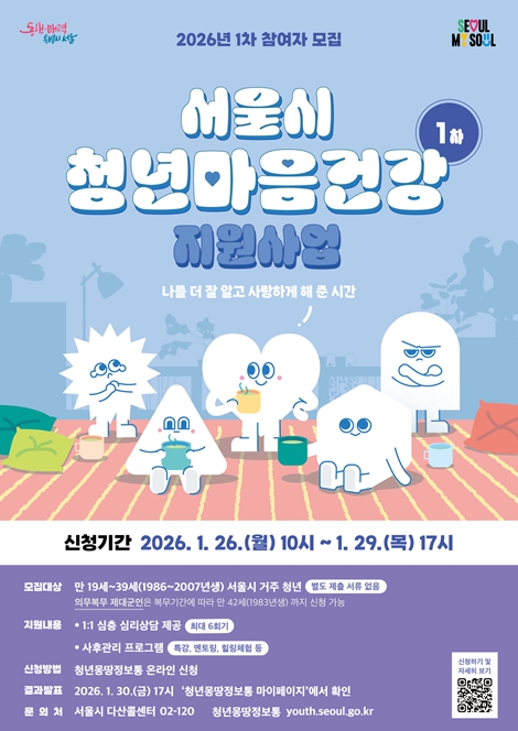 | ▲ 2026년 서울시 청년 마음건강 지원사업 1차 모집 포스터 |