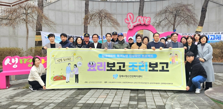 [메이저뉴스]김제시정신건강복지센터(센터장 서정수)는 올해 3월부터 12월까지 김제교동휴먼시아 아파트에서 관계기관들과 협력해 독거노인 안부확인 프로젝트‘요리보고 조리보고’를 성공적으로 진행했다고 밝혔다.