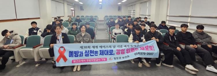 [메이저뉴스]청도군은 제38회 세계 에이즈의 날(12월 1일)을 맞아, 지난 2일 풍각면 소재 경북드론고등학교, 청도읍 소재 청도 고등학교 3학년 재학생 145명을 대상으로 에이즈 예방 교육을 실시했다.