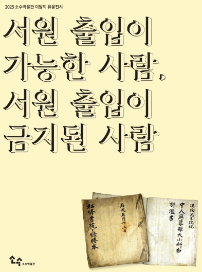 [메이저뉴스]영주시 소수박물관은 12월 1일부터 2026년 2월 22일까지 이달의 유물전시 ‘서원 출입이 가능한 사람, 서원 출입이 금지된 사람’을 개최한다.