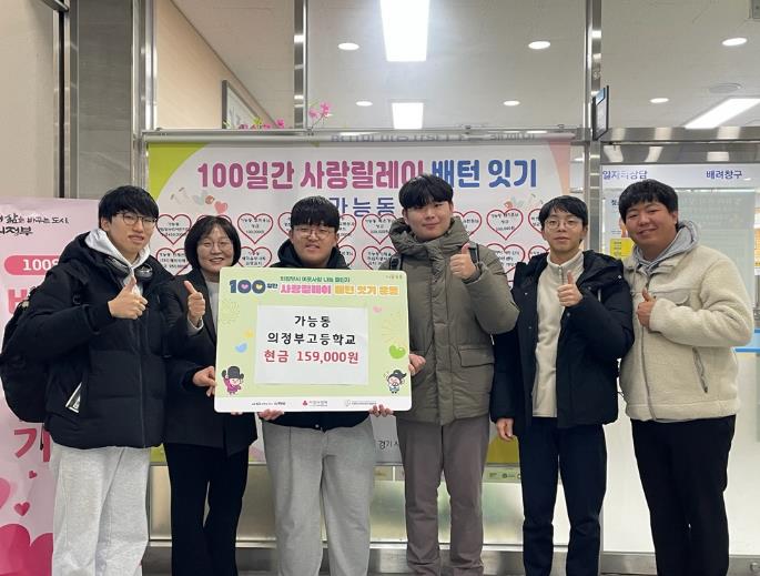 [메이저뉴스]의정부시 가능동주민센터는 1월 7일 의정부고등학교 3학년 3반 졸업 예정 학생들이 교내 축제 활동을 통해 마련한 성금 15만9천 원을 관내 취약계층 지원을 위해 기부했다고 밝혔다.